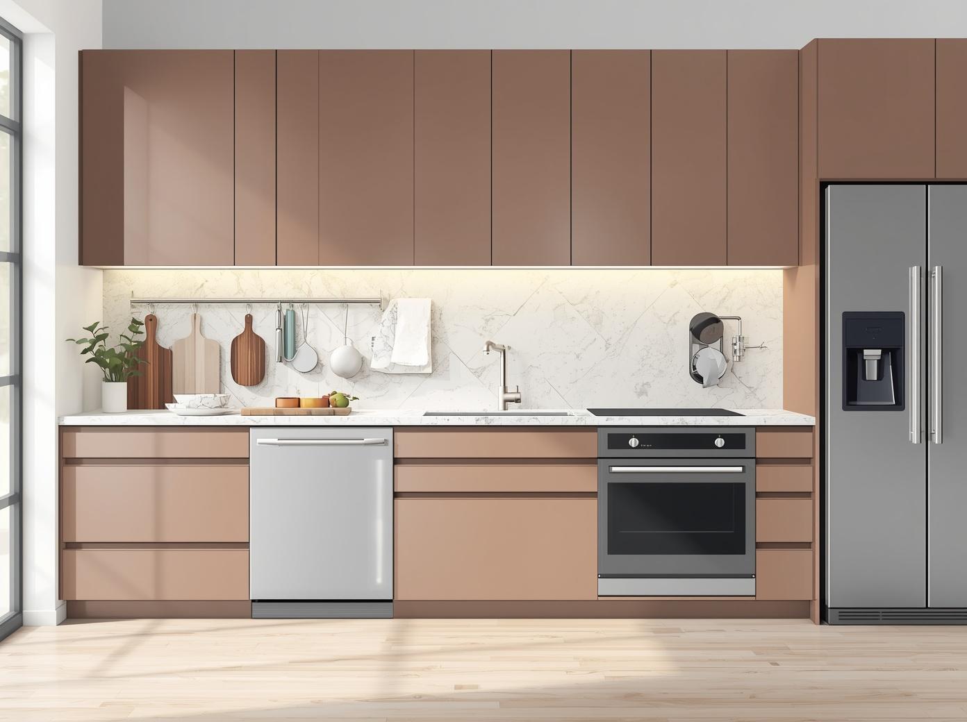Dapur minimalis kini menjadi pilihan utama bagi banyak rumah modern. Selain tampil bersih dan rapi, konsep ini juga menghadirkan kenyamanan saat memasak. Seperti pada gambar di atas, dapur dengan dominasi warna coklat pastel dan sentuhan marmer memberikan kesan hangat sekaligus elegan. Untuk melengkapi tampilan ini, pemilihan peralatan dapur yang tepat menjadi kunci utama—dan di sinilah peran Luxvera hadir sebagai solusi terbaik.