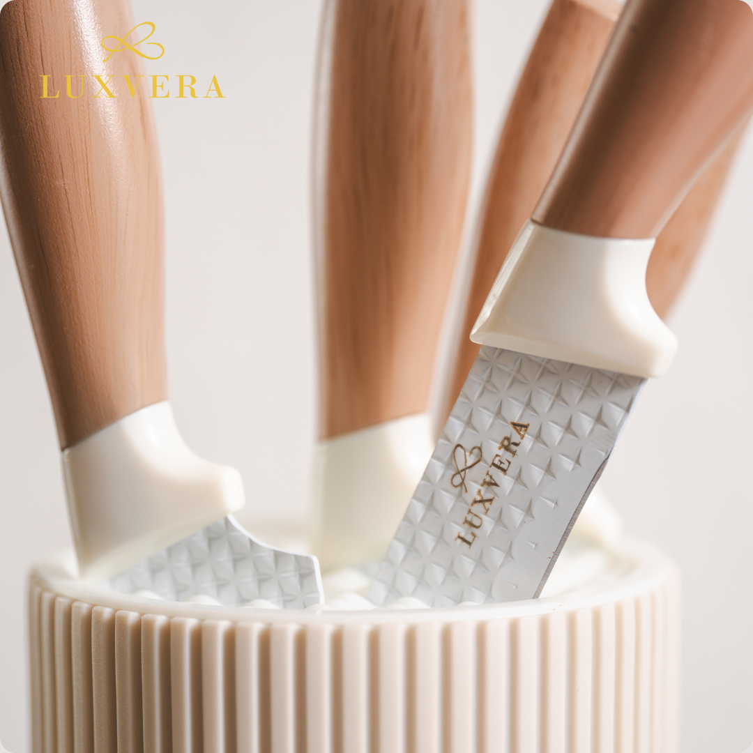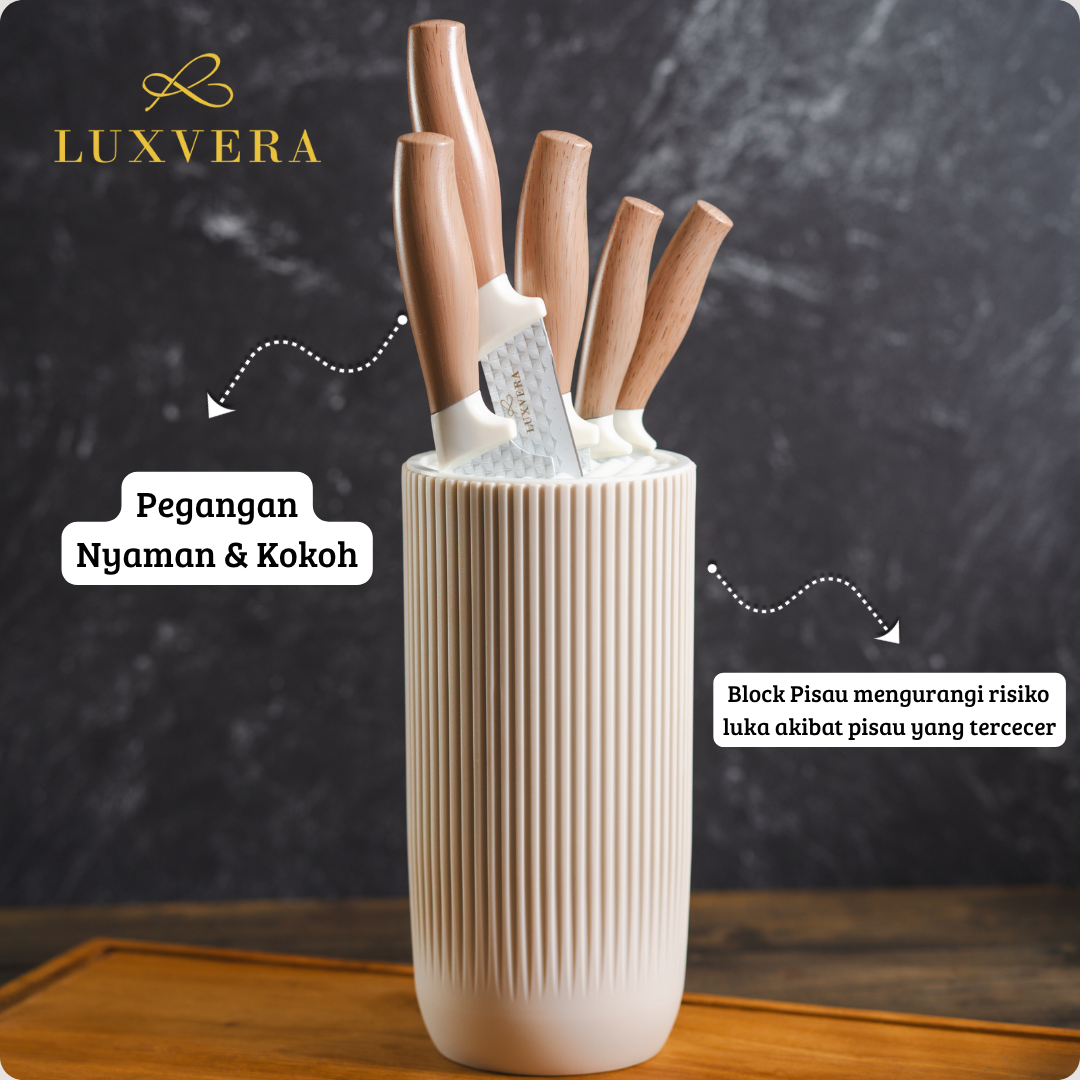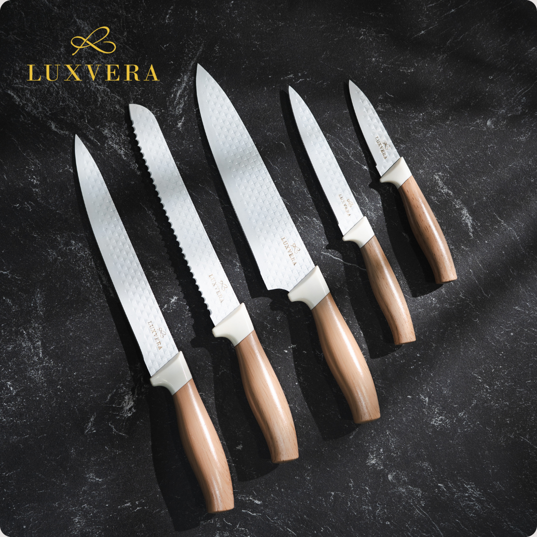 Luxvera Set Pisau Dapur 5in1 – Pisau Tajam Stainless Steel Anti Karat, Terdiri dari Pisau Daging, Pisau Buah, Pisau Sayur, Pegangan Nyaman & Elegan, Pisau Set Premium untuk Kebutuhan Dapur Sehari-hari memberikan keseimbangan ketajaman dan kenyamanan. Material berkualitas menjaga performa, desain stabil memberi kontrol baik, sehingga hasil potongan presisi dan konsisten.